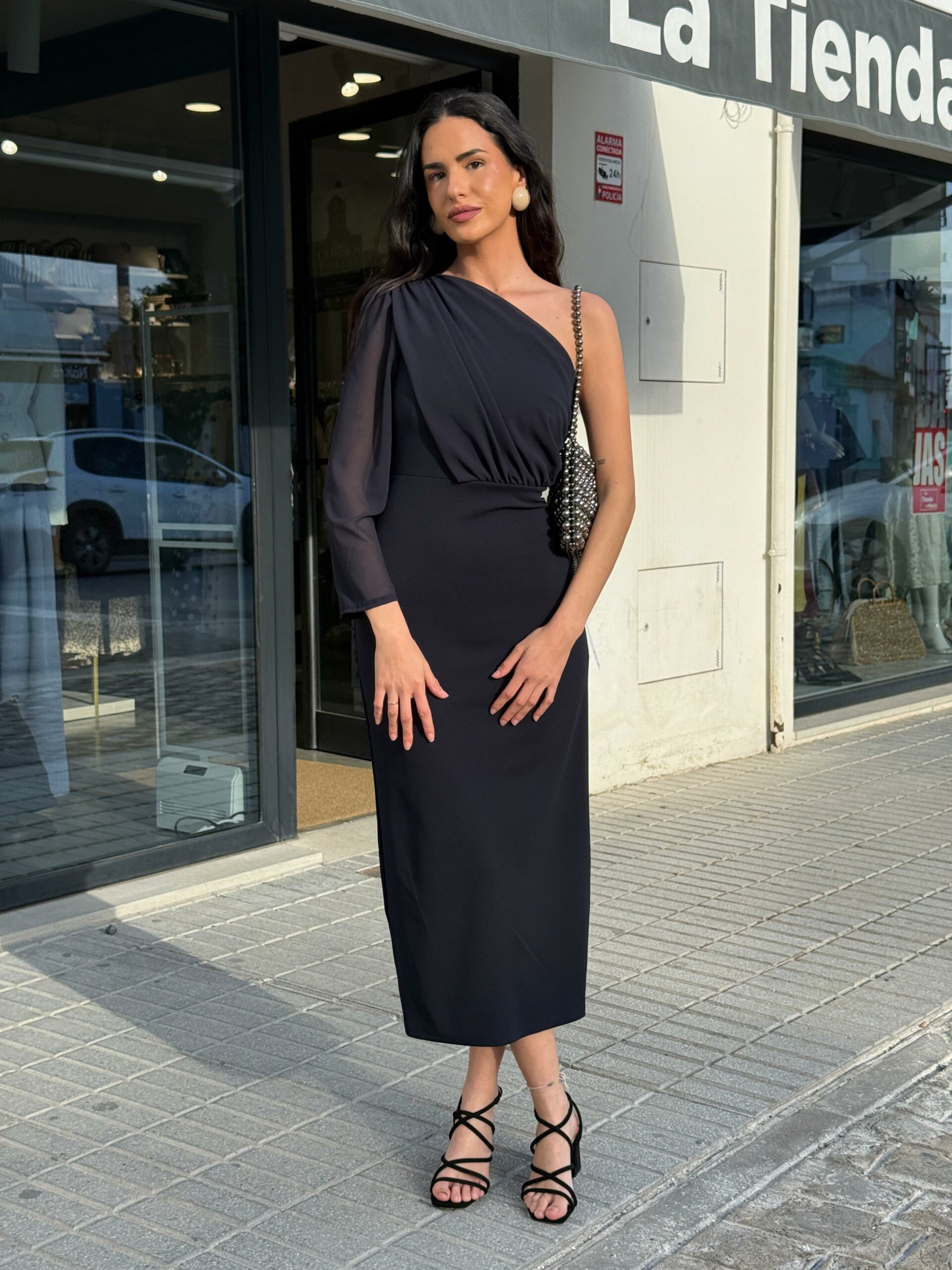 El Vestido Amalia es sinónimo de elegancia atemporal. Su diseño asimétrico de un solo hombro estiliza la parte superior y aporta un aire sofisticado y femenino.