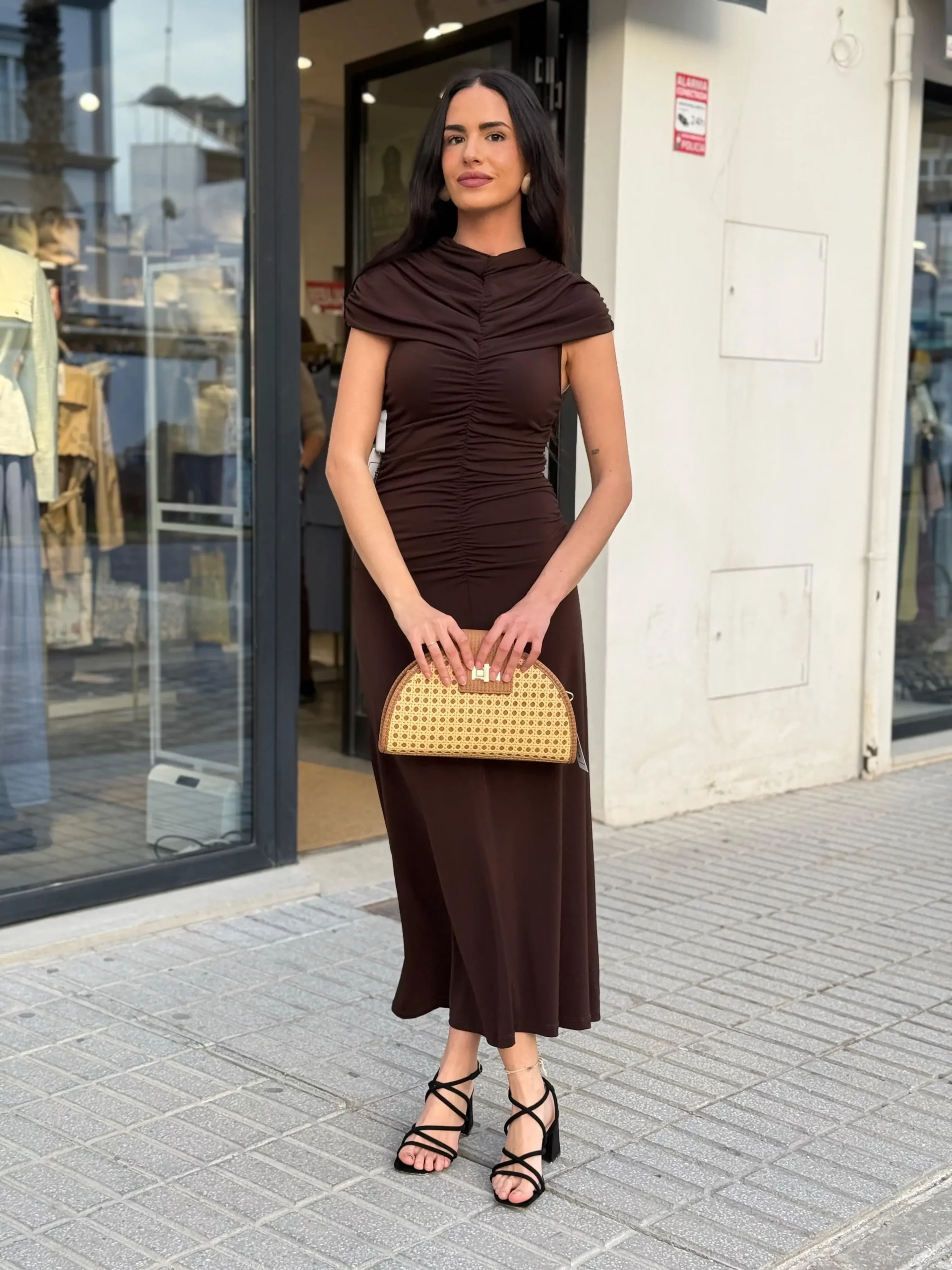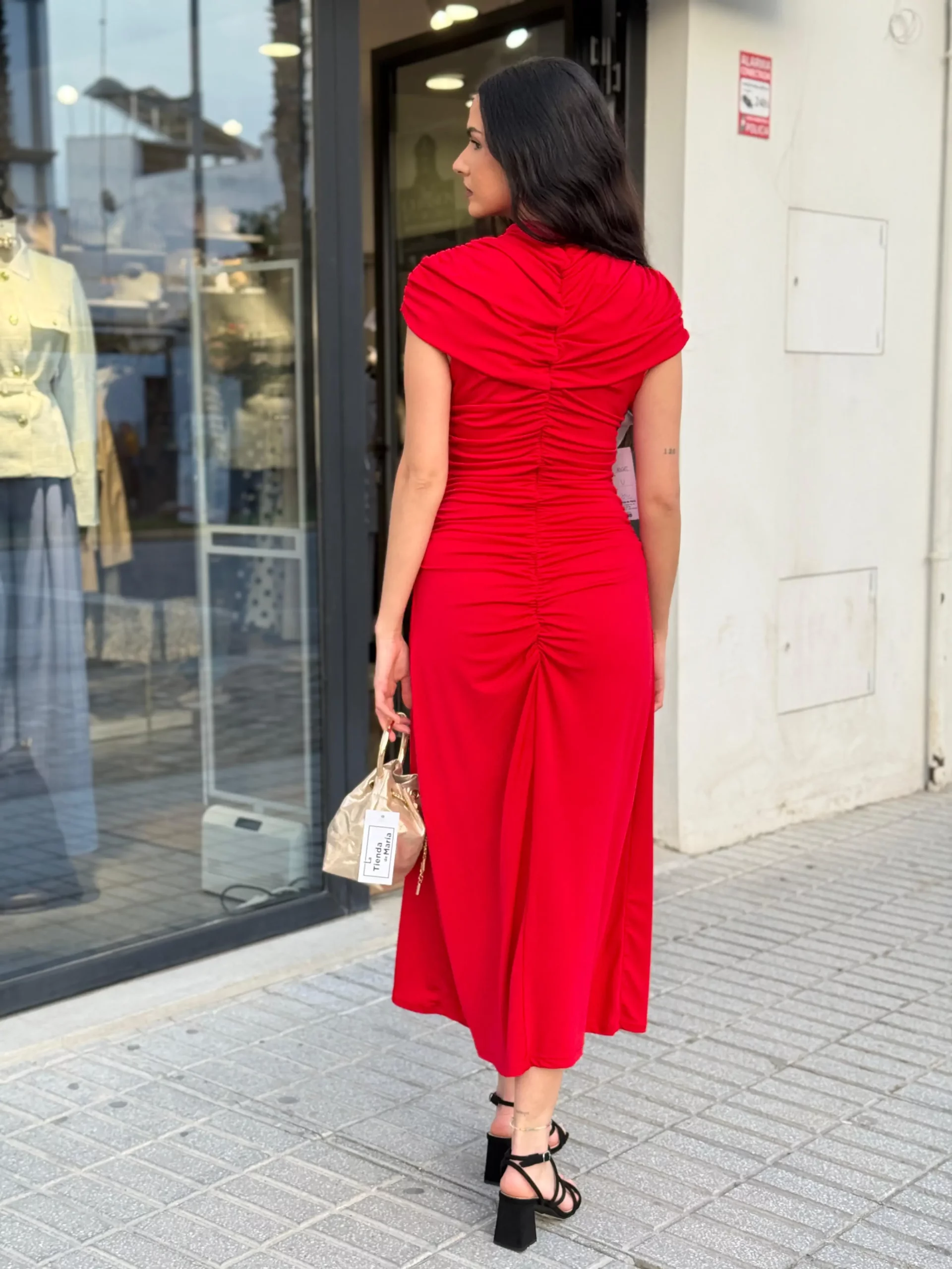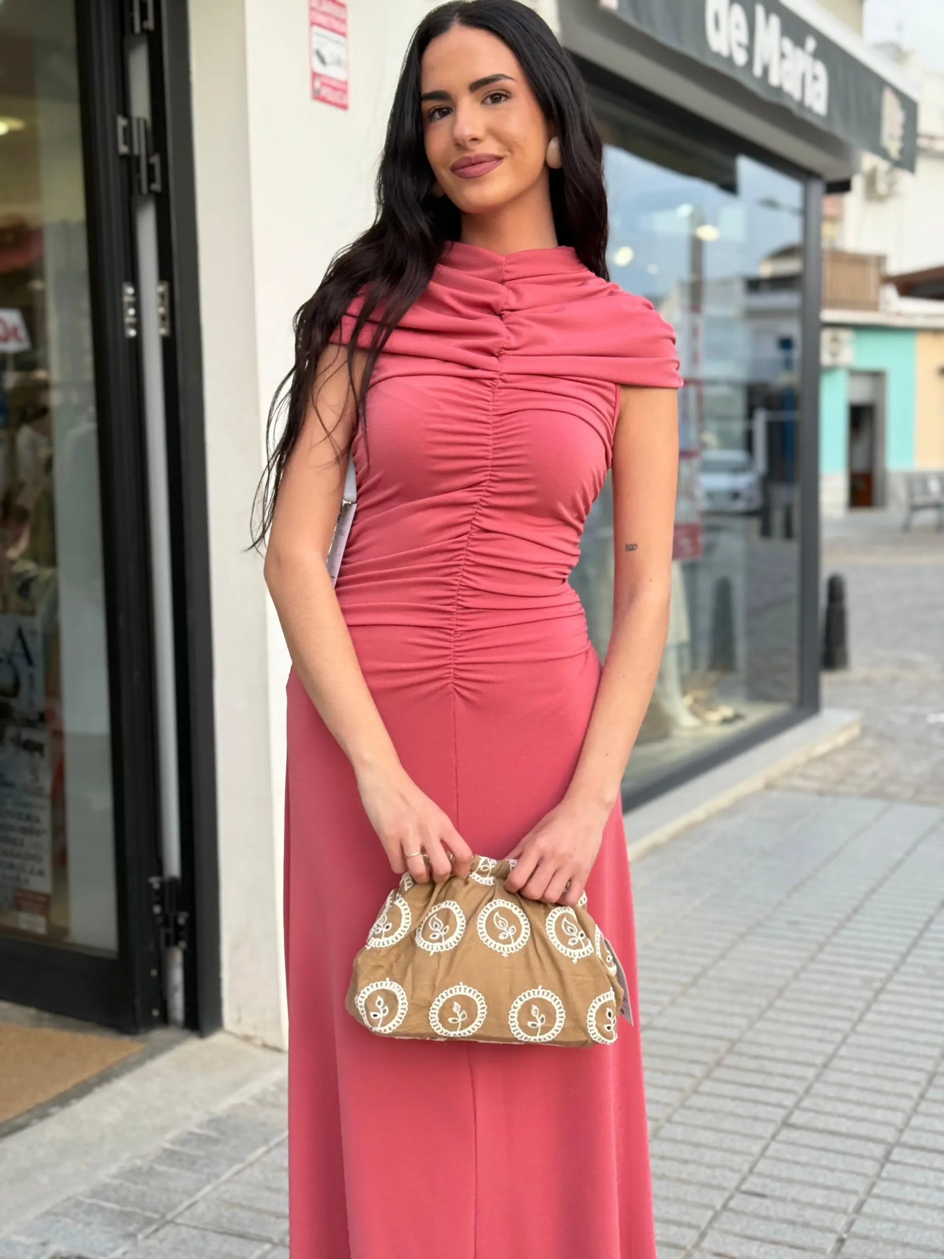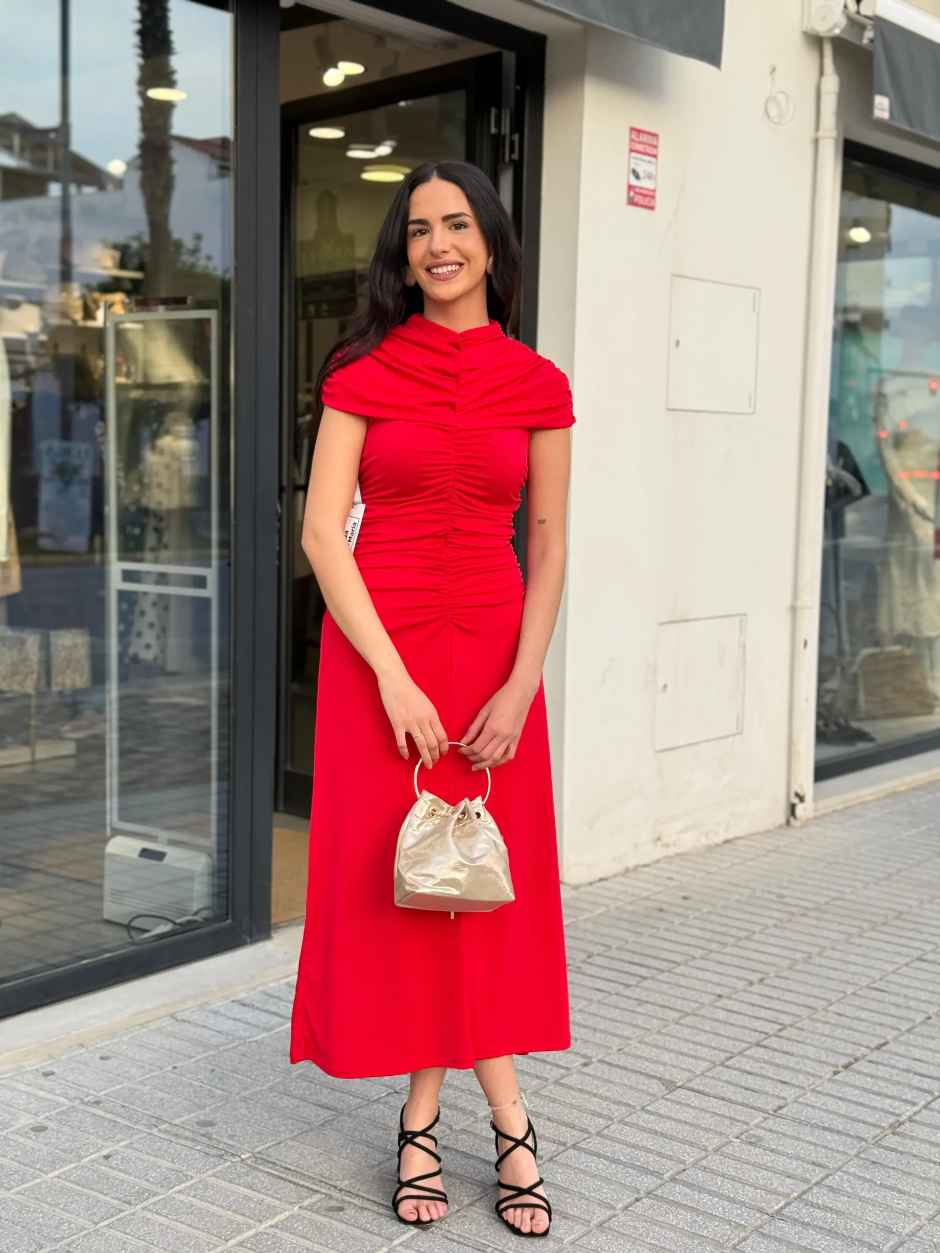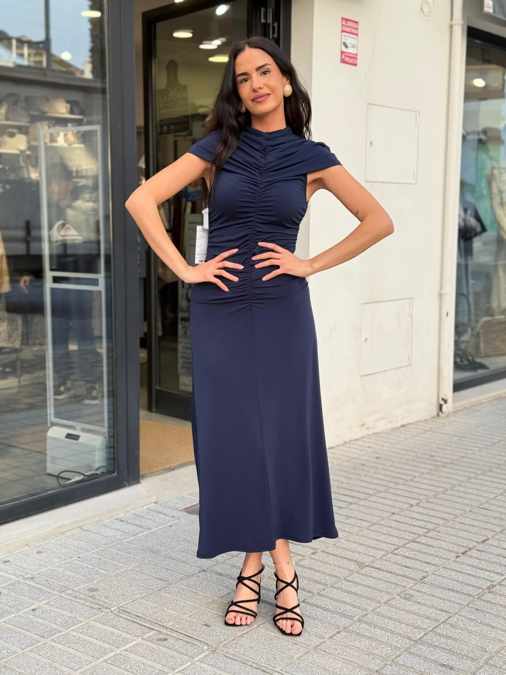 El vestido Manuela es una pieza diseñada para realzar la silueta con elegancia natural. Su característico fruncido central estiliza la figura, mientras el drapeado superior aporta un toque sofisticado y diferente que lo convierte en un vestido especial. La caída fluida de la falda proporciona movimiento y comodidad, ideal para llevar durante horas sin renunciar al estilo.