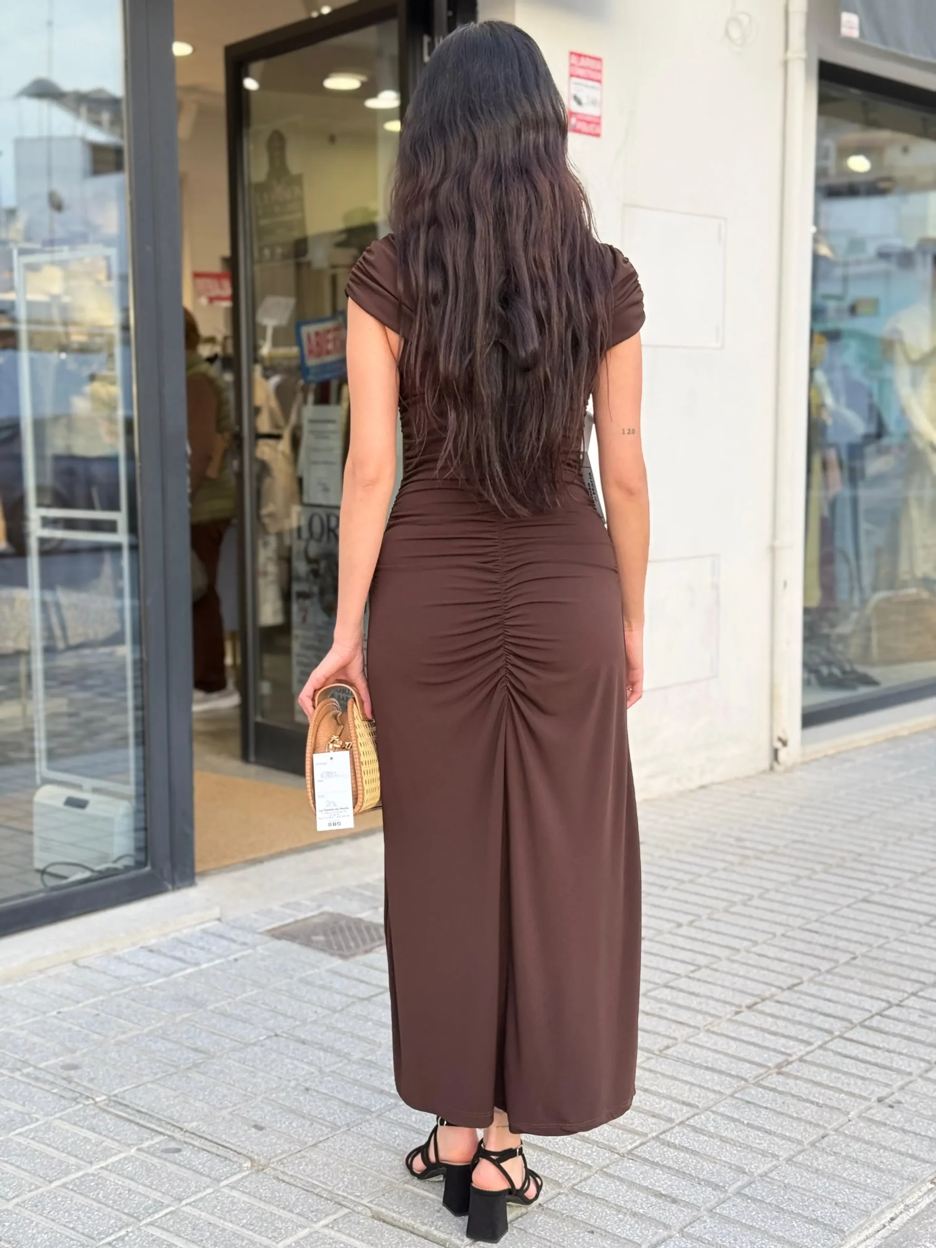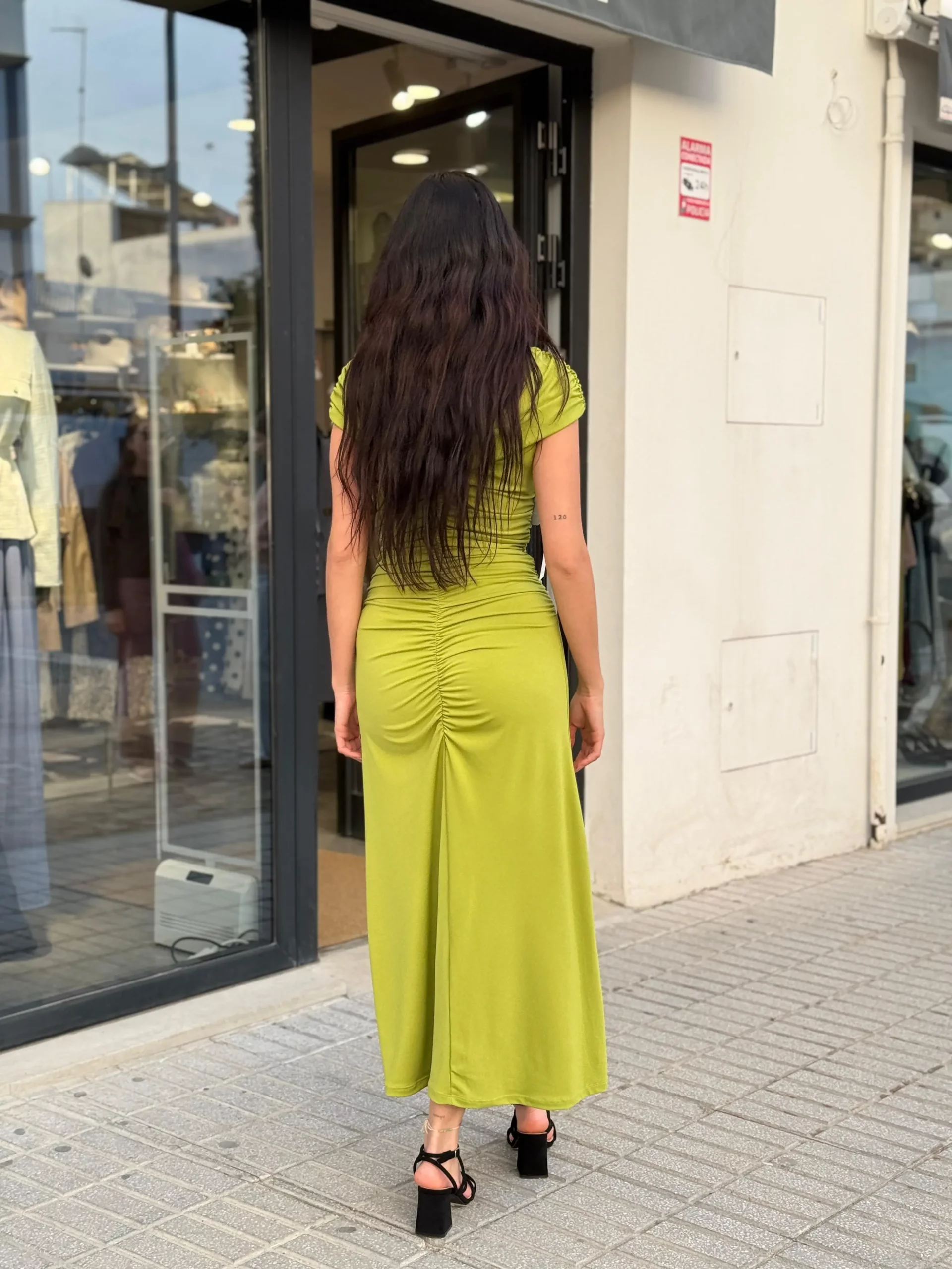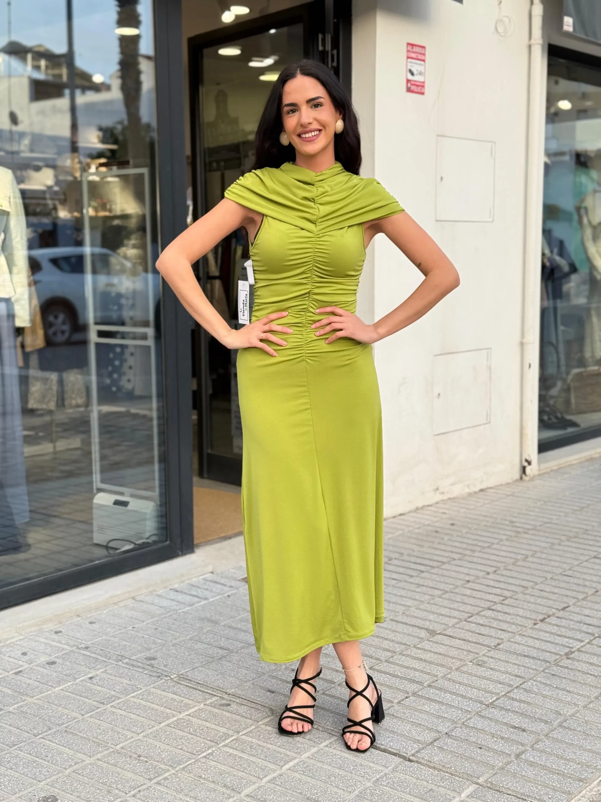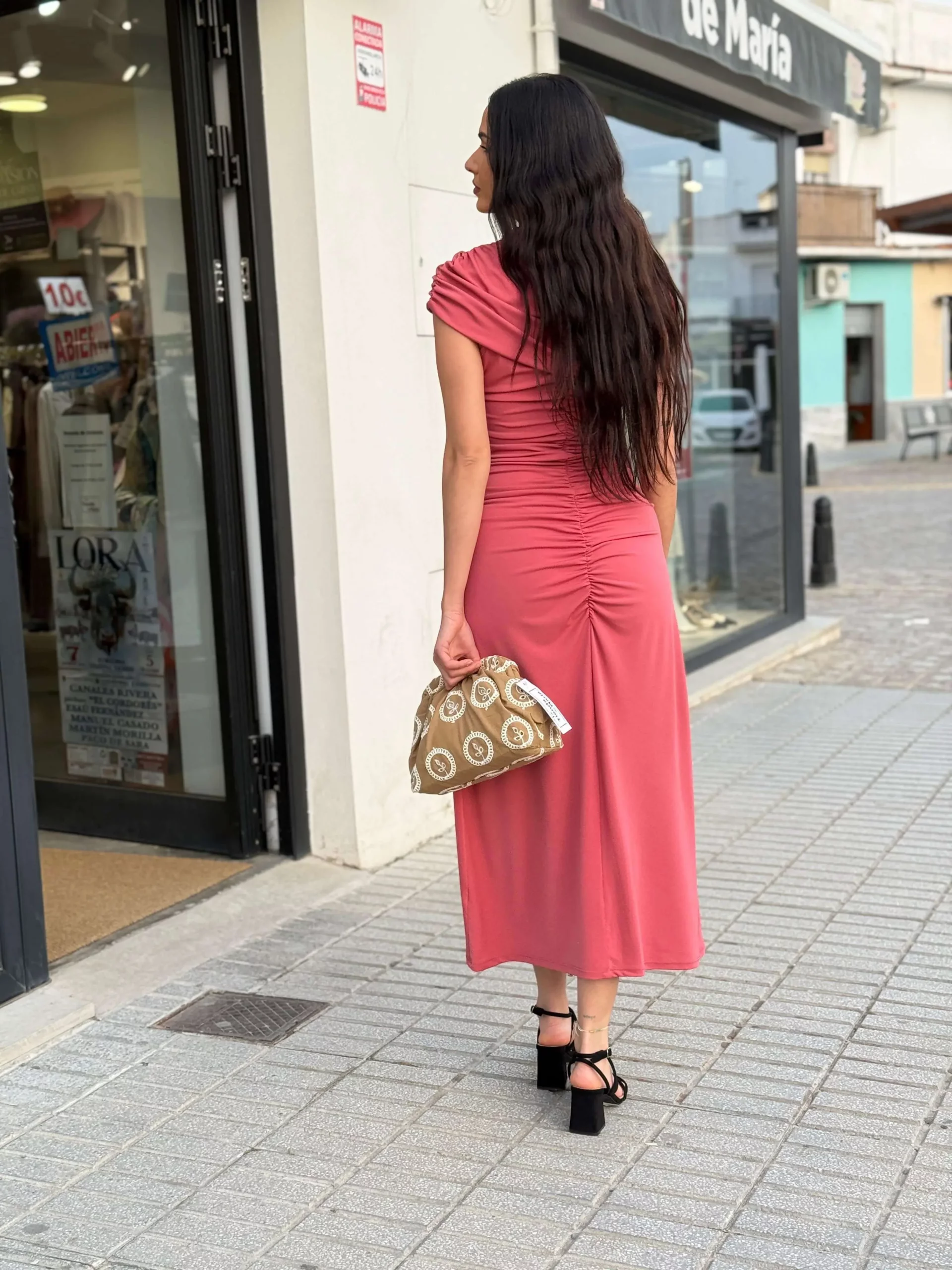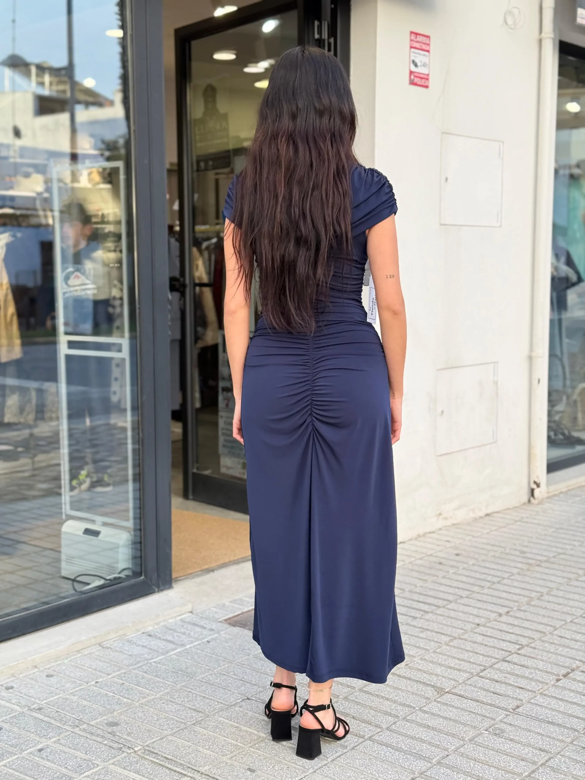 El vestido Manuela es una pieza diseñada para realzar la silueta con elegancia natural. Su característico fruncido central estiliza la figura, mientras el drapeado superior aporta un toque sofisticado y diferente que lo convierte en un vestido especial. La caída fluida de la falda proporciona movimiento y comodidad, ideal para llevar durante horas sin renunciar al estilo.