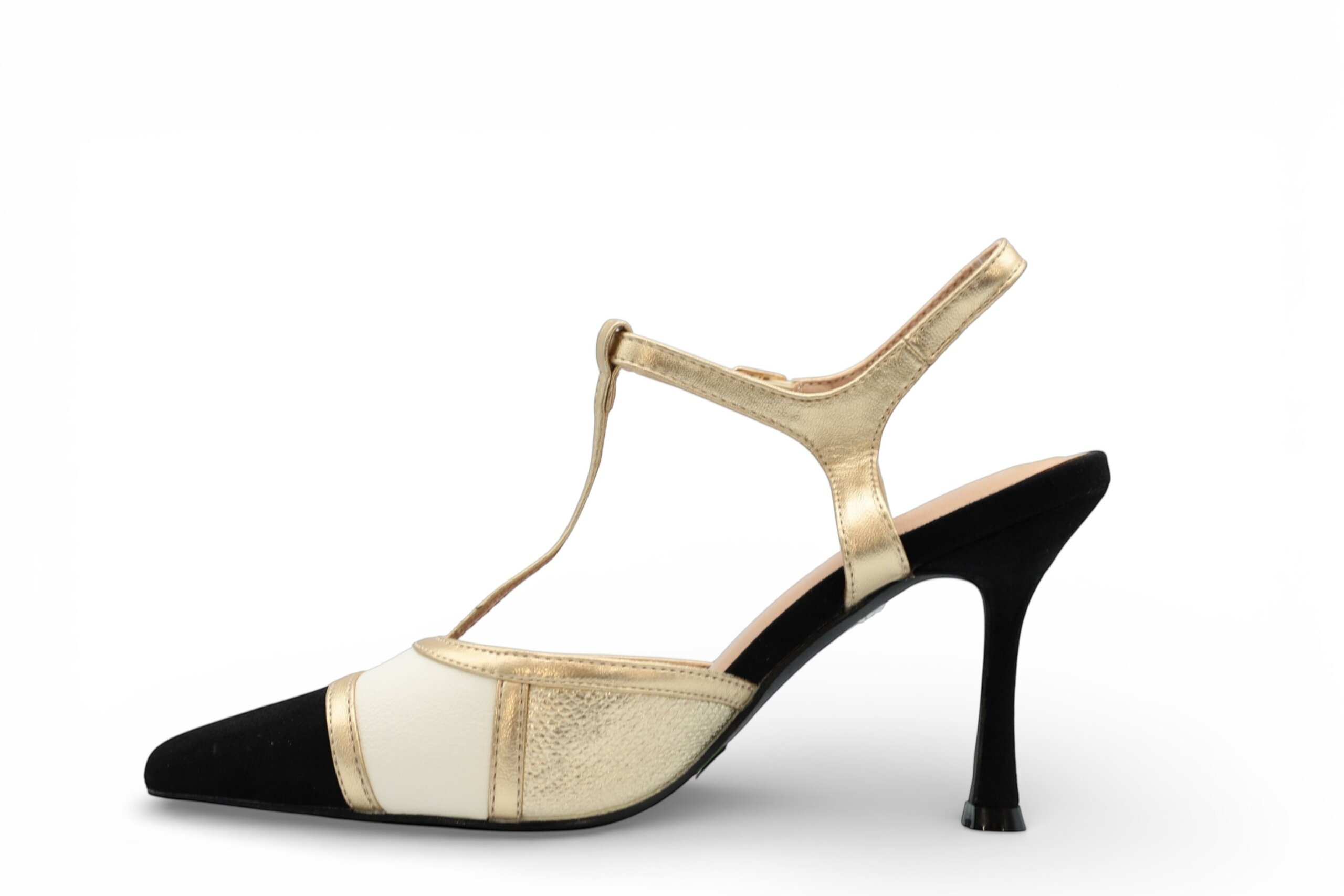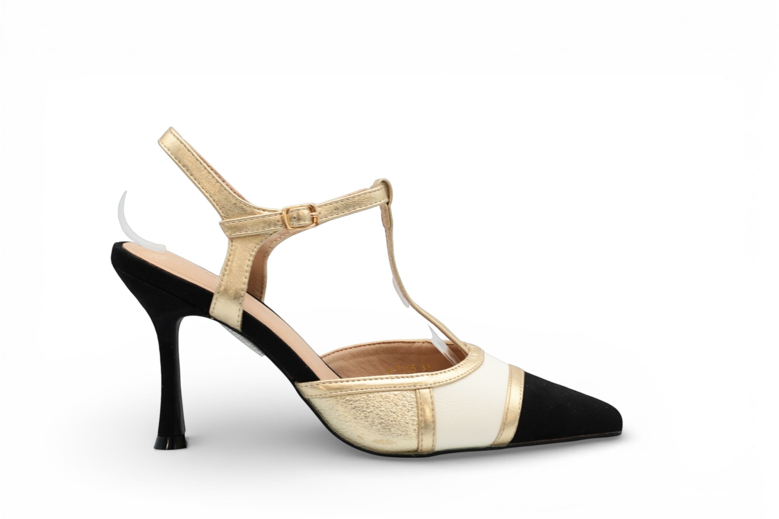 El Zapato Tricolor Elegance combina diseño, sofisticación y versatilidad en una pieza única. Su combinación de tonos crea un efecto visual estilizado que alarga la silueta y aporta personalidad al look.